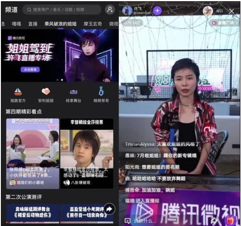 另一方面,通过与《乘风破浪的姐姐》联动,也能在一定程度上提升平台内容、形式的丰富性,拓宽腾讯微视直播的内容矩阵。