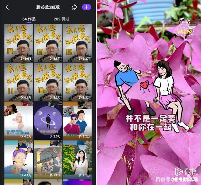 作为一个短视频新人,目前“鹏老板走红毯”这个账号ID已在腾讯微视发布了64个作品,收获了31.2万粉丝。