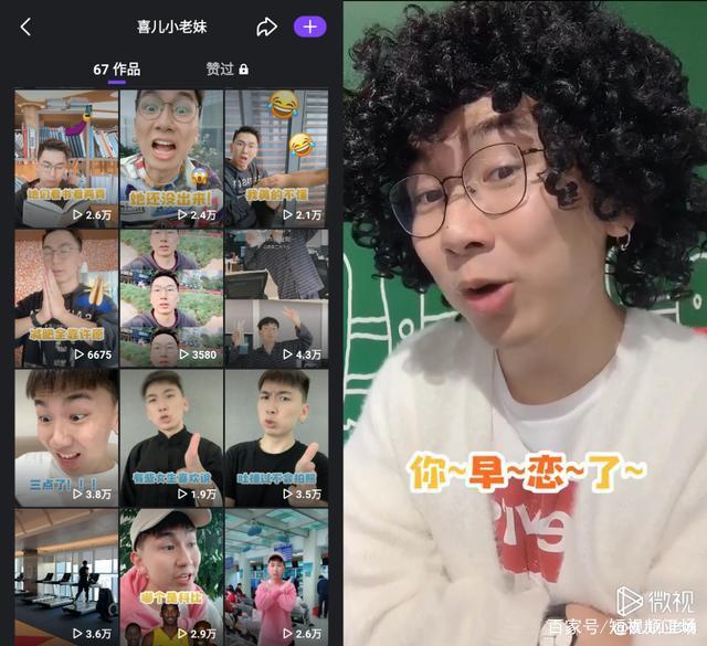 一直以来,短视频在他生活中占据的比例并不大,更多是空闲时玩乐的工具。直到2019年2月底,他在腾讯微视注册了“喜儿小老妹”账号,并发布了在平台的第一个视频,视频风格主打搞笑、喜剧内容。