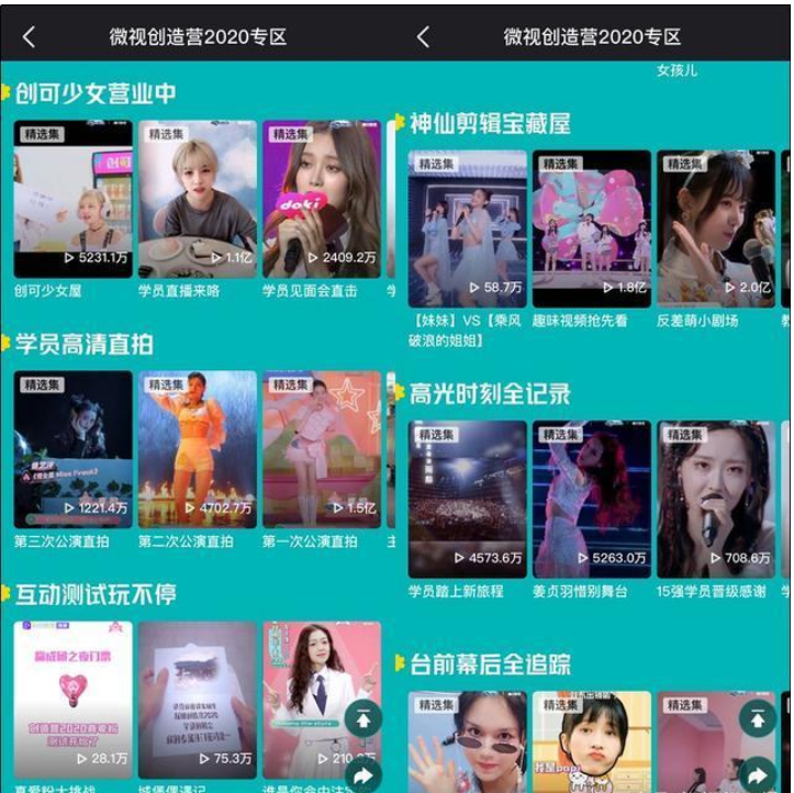 通过打造爆款专区,在腾讯微视,粉丝用户不仅能反复直拍、纯享舞台等高清回放内容,还推出幕后花絮、主题曲挑战赛、神仙宝藏剪辑屋等大量衍生趣味内容,以此吸引更多的内容生产者和用户加入到视频创作之中。