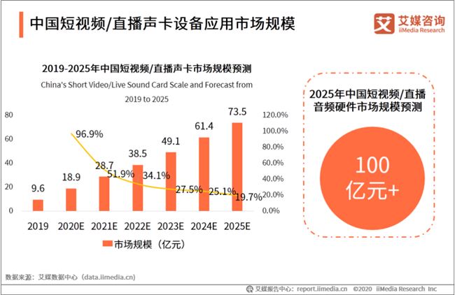 随着短视频直播声卡设备渗透率的持续提升,预计到2025年,行业市场规模将超100亿元。
