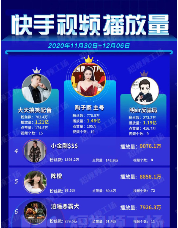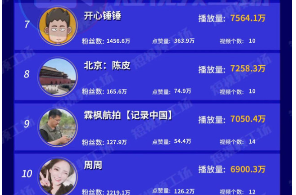 快手播放量榜